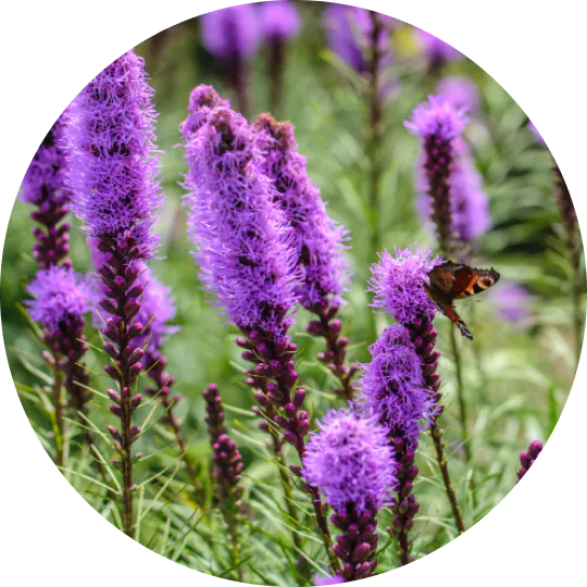 With its stately purple plumes and delicate grass-like foliage, Dense Blazing Star is a low maintenance beauty that will provide a an oasis to birds, butterflies, and other important pollinators. It will add stunning texture and color to your spring and fall garden. It is perfect for full sun spaces that get six or more hours of sun per day.