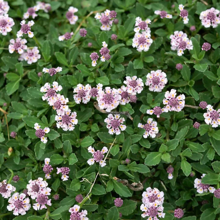 Frogfruit is a low-growing, evergreen perennial with charming white to pinkish flowers that provide nectar to a variety of bees and butterflies. It forms dense mats and makes an excellent groundcover or lawn alternative. Adaptable to a range of soil moisture conditions—from dry to moist—it can also be grown in containers.