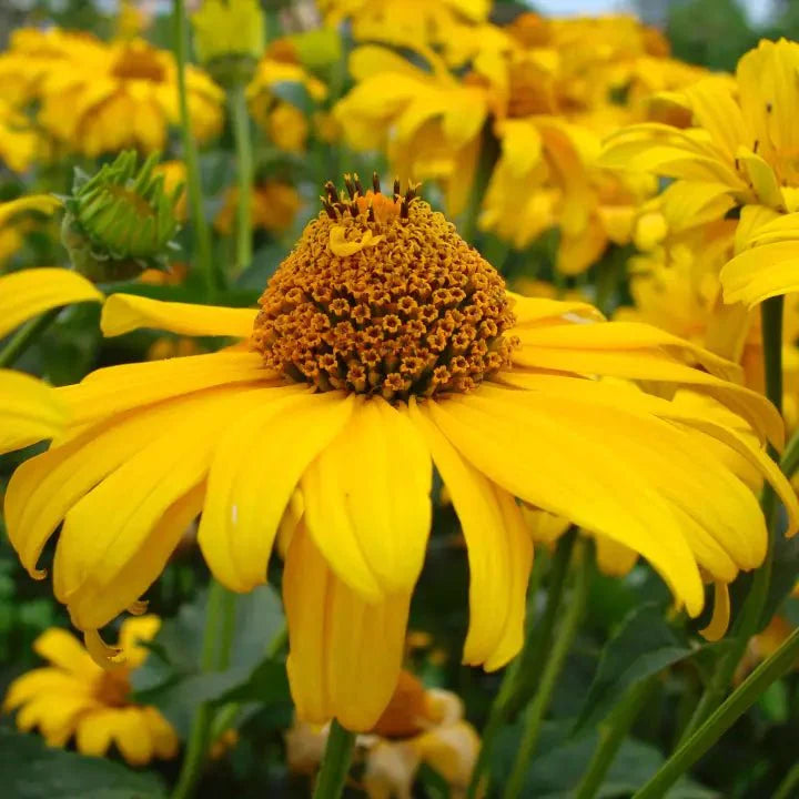 With an abundance of cheery, bright yellow blooms, Oxeeye Sunflower attracts butterflies in early to mid-summer. Early spent flowers can be removed to extend the bloom season. Leave later flowers for songbirds to feast on the seeds.