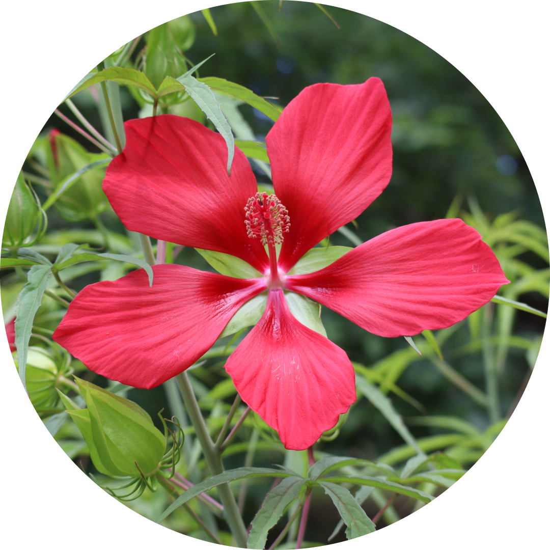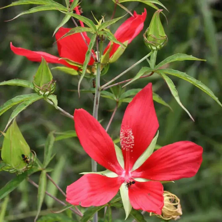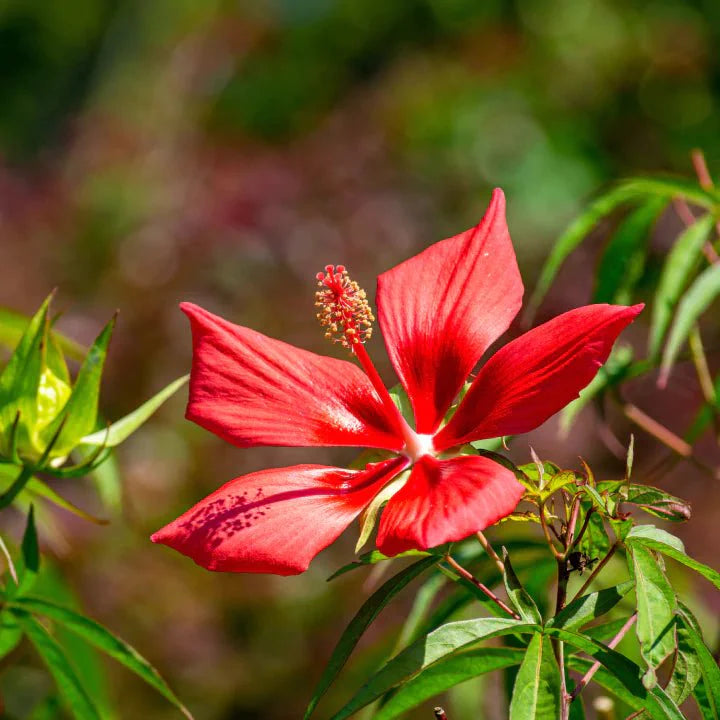 Grown non-GMO and free of harmful neonicotinoids for healthy pollinators and planet, the Scarlet Hibiscus shrub for sun: